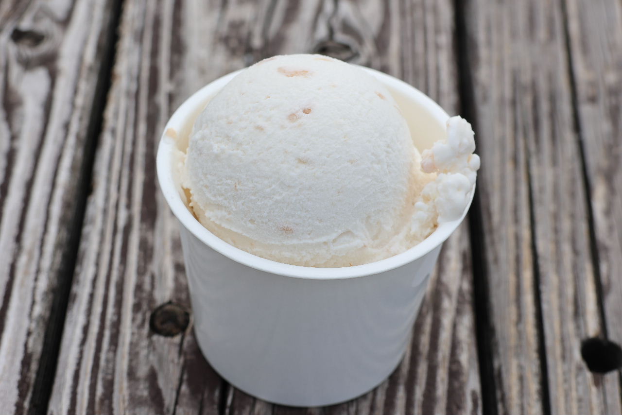 「財田の桃アイス」(シングルカップ250円)をおやつにした。