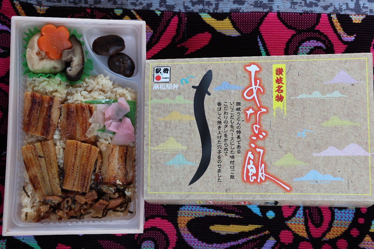 次の列車を待つ間に、高松駅で買った「あなご飯」(1200円)でお昼ごはん。