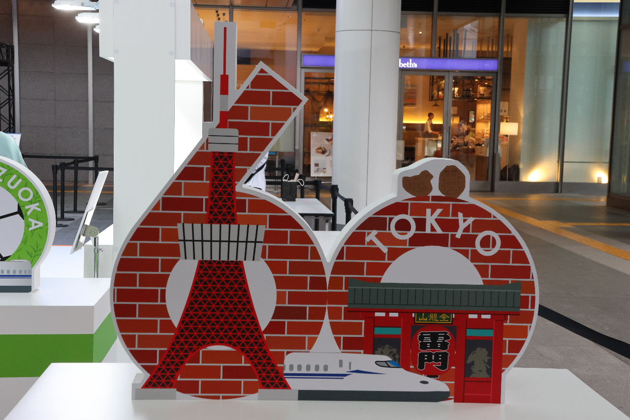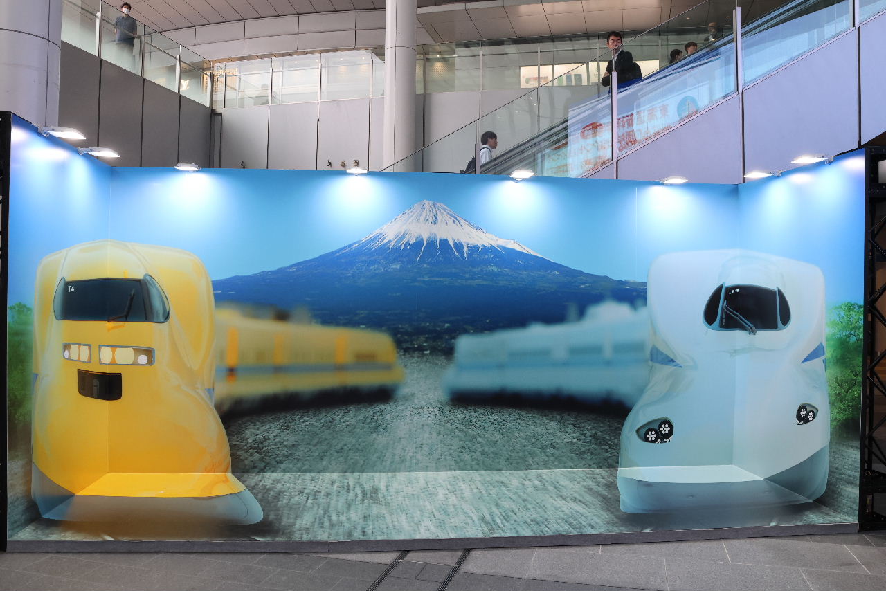 会場入口には、東海道新幹線5駅に設置されている60周年記念フォトスポットが並ぶ。
