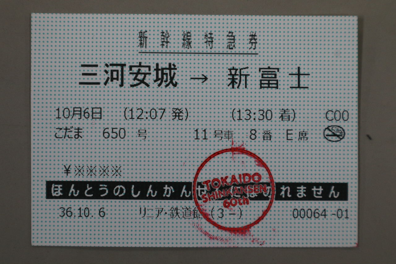 新幹線特急券を発券したら、東海道新幹線の車内へ。