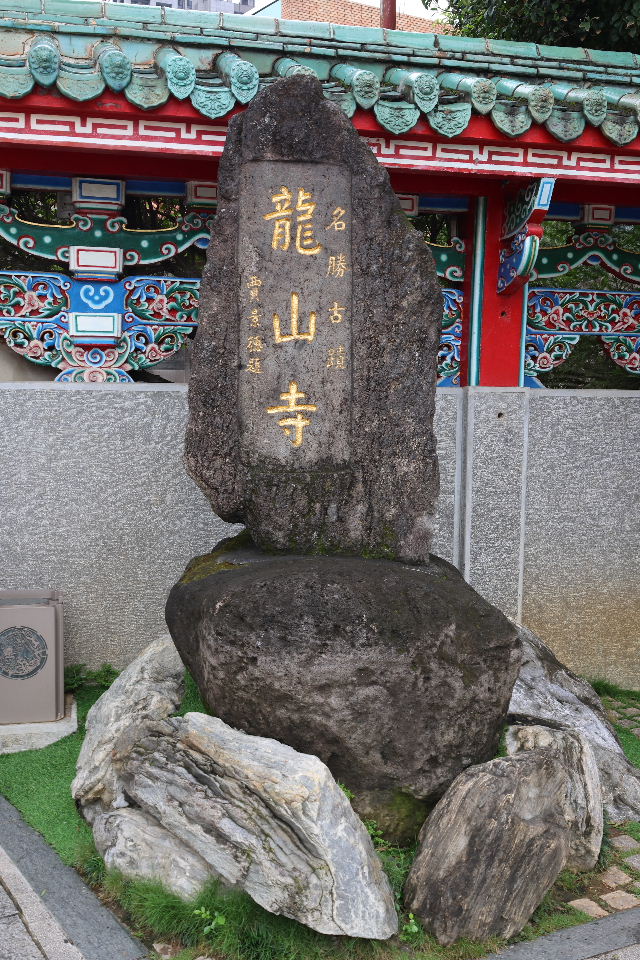 山門は大きいので、龍山寺の石碑が小さく見える。