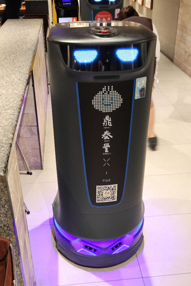 日本のファミレスでも見かけるロボットに案内される。