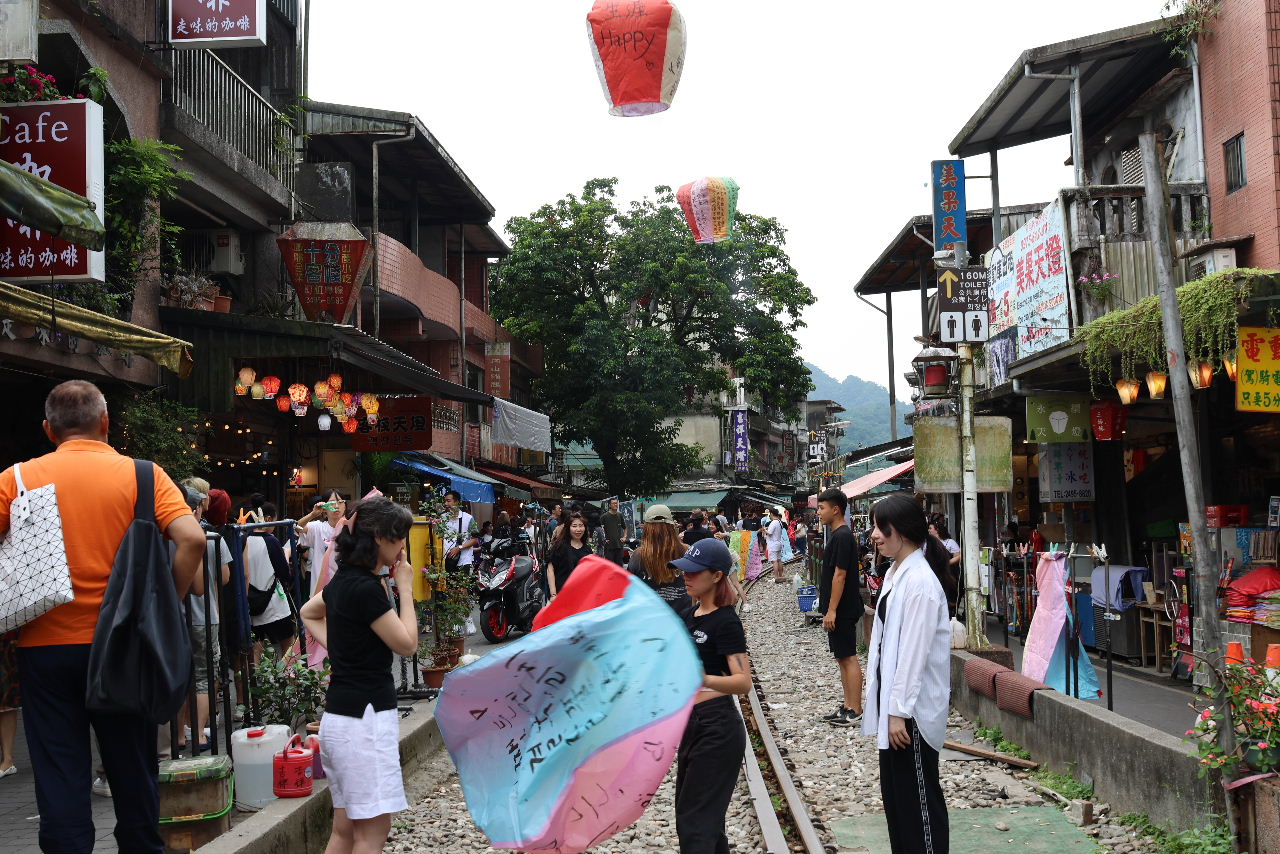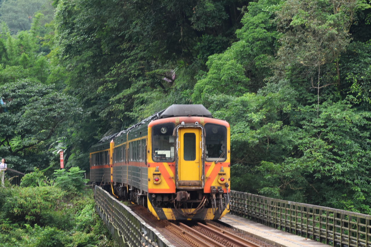 十分瀑布からバスへ戻る途中、台湾の普通列車を見かけた。
