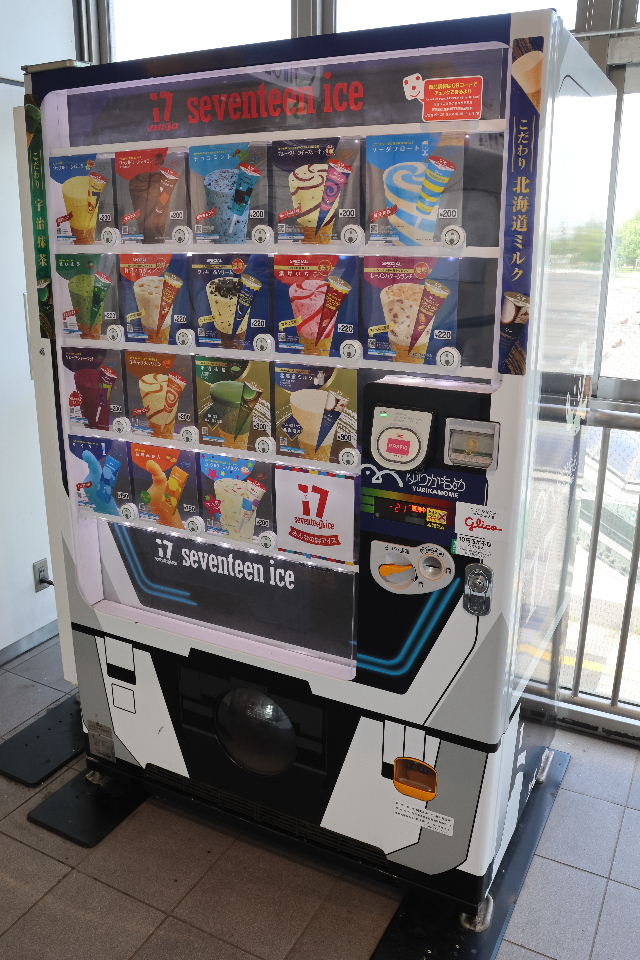 東京国際クルーズターミナル駅のアイスクリームの自販機は、「ゆりかもめ」の形をしている。